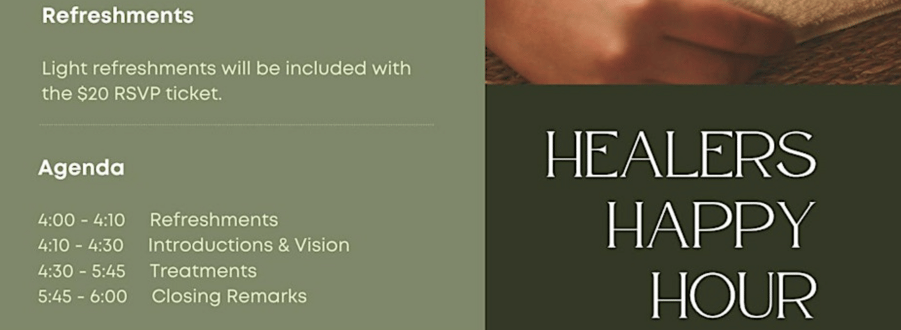 Details: Join us for Healers Happy Hour, where we'll unwind, connect, and recharge with like-minded souls in a cozy and uplifting atmosphere! Register here.